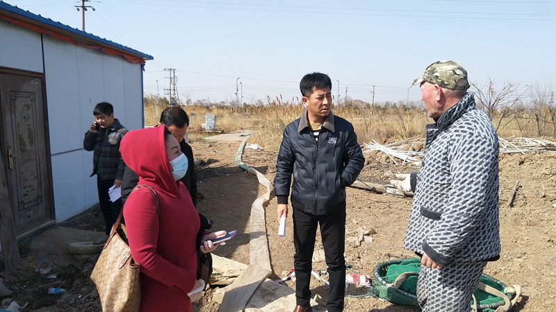 东地块养殖池塘,程圩闸口南养殖池塘,元宝港南1.7公里处地块养殖池塘等小地块边角水面的出租。面积约100亩。实现零星土地增收见效,扩大了企业的收益。图为现场测量养殖水面面积和与租赁户交谈。