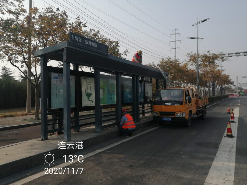 镜头一:7号清晨,享有翔立“铁军”扛把子称誉的机械班已经热火朝天的投入到黄海大道公交站台除锈喷漆翻新维护施工中,据悉,该项工程共有12座公交站台需要维护喷漆翻新,工程造价12万元。