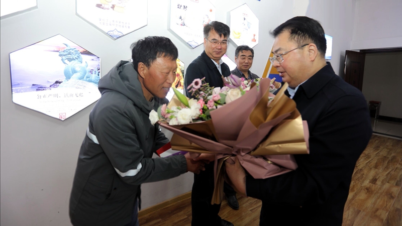 戴鸿鸣副书记还为劳模们送上了鲜花和生日蛋糕卡。