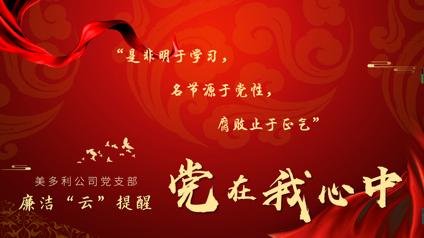 “是非明于学习,名节源于党性,腐败止于正气”,“撑起自律的绿伞,秉公道执仁政,守得四季常青,为廉政保驾;竖起正义的风帆,劈歪风斩邪浪,迎来海阔天空,为廉洁护航。”党的一百零一周年生日来临之际,美多利公司全体党员收到支部发送的廉洁提醒短信。