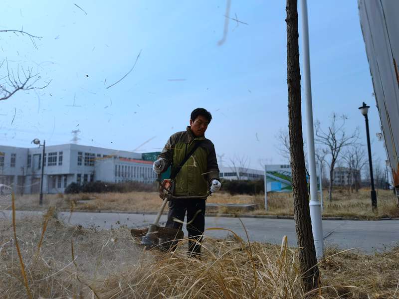 初春的清晨依然寒风刺骨,美多利的“打草英雄”们扛起了“行囊”来到草丛开始了一天的“战斗”。
