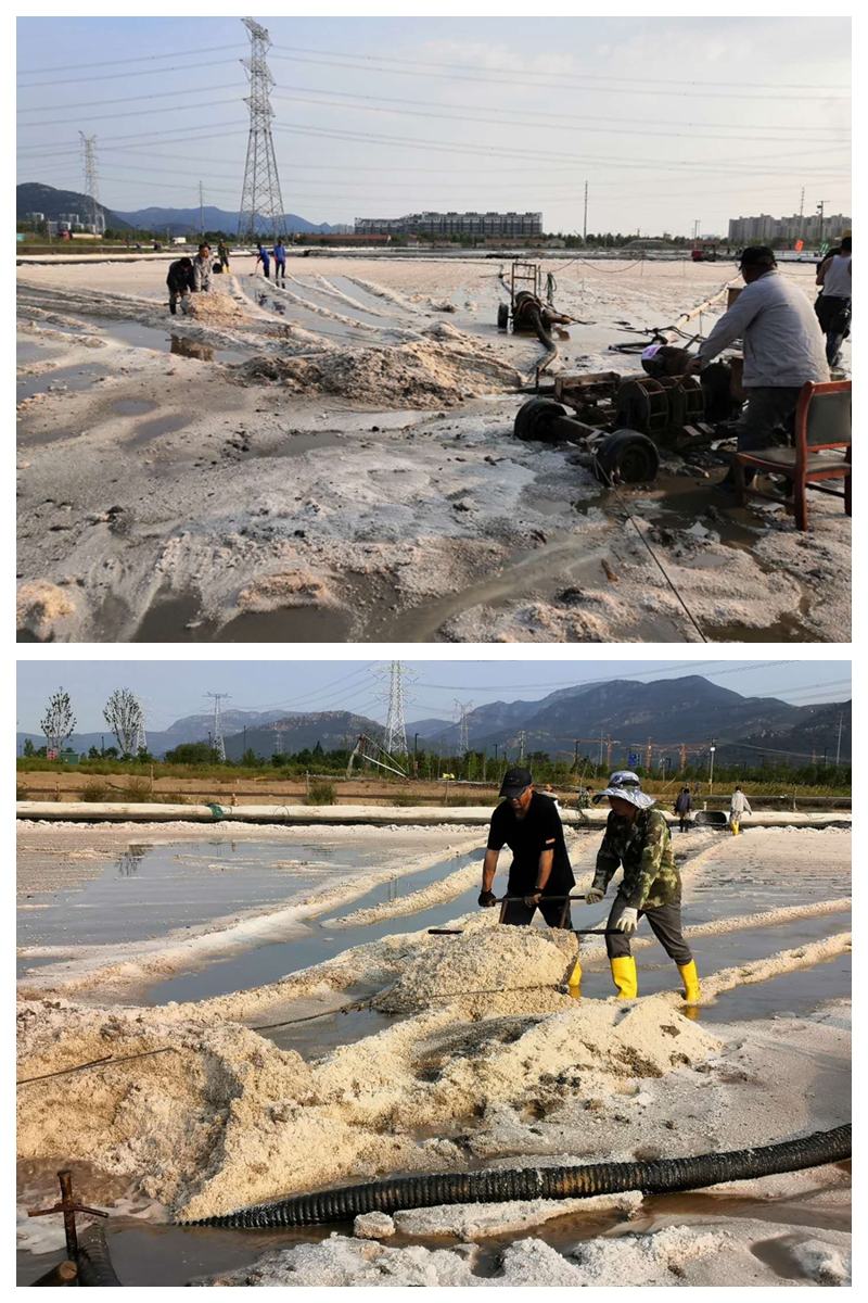 “大架在向后移动4到5公分,盐镑、卤镑与管头螺丝拧紧没有?触电保安器试跳一下”…….扒盐现场忙碌而有序,扒盐人员对开机前准备工作再一次检查确认。15:56分鞭炮齐鸣、礼花满天,“秋扒”正式开启。本次扒盐采用人工与机械相结合的工作方法,根据盐层的厚薄程度决定扒盐的方式。此次扒盐生产周期长、工作量大,工区认真组织、精心安排,制定了详细、”人性化”的管理人员跟班督查值班表(男同志夜班女同志白班)。要求跟班人员,务必将“安全、质量”两大主题贯穿整个秋扒工作的各环节,每天深入扒盐点开展全面综合性的定点检查,重点围绕“工艺执行、安全防范、护具穿戴”等,职工容易产生思想麻痹的细节工作,严明纪律,杜绝违章作业。抢时间争速度,确保“秋扒”高效有序完成。