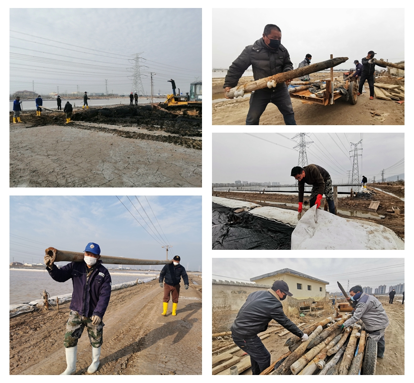 疫情来袭和征地影响给大浦工区2020年的原盐生产任务带来了的重大压力,面对严峻的形势,大浦工区迅速调整生产机制,制定应对措施,将受征地影响的14、15班调整至先锋东滩生产钙盐;将两块闲置地块进行改造为春灌塑池,进一步扩大结晶面积;铺设管道将已征塑池底碴盐泡碴制卤输送到二组,对驳运完盐的廪基冲化粉盐制卤,为原盐生产降单耗打好基础。全工区上下呈现出“大闹生产”的良好氛围,大浦人用奋斗唱响了最美的“盐之歌”。