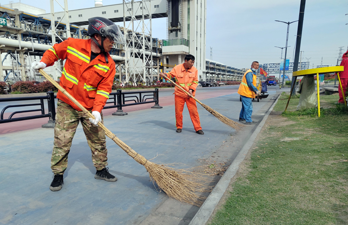 保洁保障“步调一致”。为完成徐新路、徐圩大道、海滨大道等石化园区多条道路保障任务。130余名“保洁先锋”轮流转,每日清扫辅道路修剪石楠等树叶杂草落叶路线1500米、清洗站台座椅40余个、清掏果皮箱130余个、转运生活垃圾300袋、打包转运商铺垃圾150余车,为保障节日期间道路保洁锲而不舍。