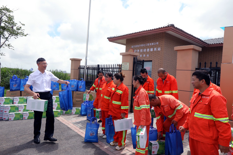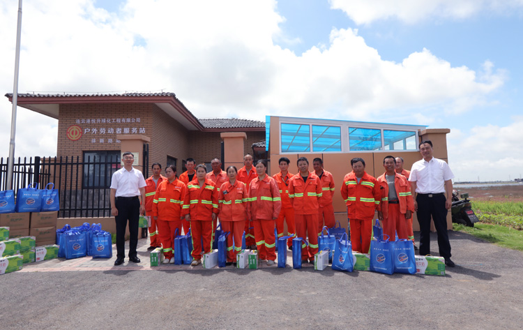 酷暑盛夏,热浪滚滚,高温“烤”验着每位奋战在一线的职工,也牵动着云开平台公司领导的心。7月18日,云开平台公司副董事长、总经理张六林一行到徐圩生产一线“送清凉”。云开平台公司副总经理陈如军,办公室主任王力;投资公司党委书记、董事长、总经理庄清付,党委副书记、工会主席刘刚陪同。