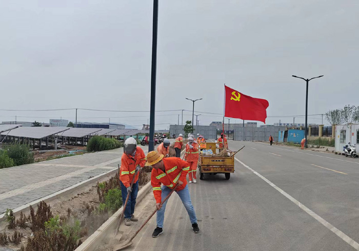 621日,该党支部近30余名党员在支部的感召下,汇集于新区节能一路道路两边。劳动现场,党员生产骨干姚功身先士卒,无惧泥土粉尘扬起,挥汗清理,不怕脏、不怕累,不放过任何卫生死角。劳模张学军与老党员徐习东相互配合,打包,装车, 及时转运各类垃圾达50多袋,清扫路面积土近1500米长,大家分工明确,重活脏活抢着干。队员们齐心协力,用实际行动诠释党员吃苦在前、勇于担当的奉献精神。经过四个多小时清理,主干道及周边道路垃圾、杂草、泥土全部清理干净,高质量完成奉献劳动,鲜艳的党旗在阳光的照耀下显得格外闪亮。(杨波)