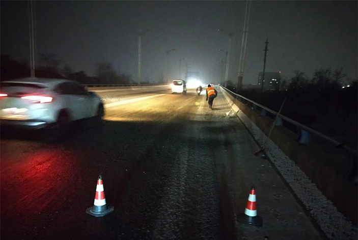 “下雪就是命令!”昨晚几乎与降雪同步,板桥园区满城“橘黄闪耀”。风雪中,瑞南人不畏严寒,坚守岗位,后勤保障加班加点,在连云园区烧香河大桥上,各班组人员协同作战,有指挥、有铲雪、有抛洒融雪剂,他们挥舞铁锹、挥动扫把,全速进行扫雪除冰工作。截止19日凌晨两点,烧香河大桥、程圩高架桥,上下引坡等交通要道区域积雪已基本清除完毕,其他路段正在有序清理。 (金知青)
