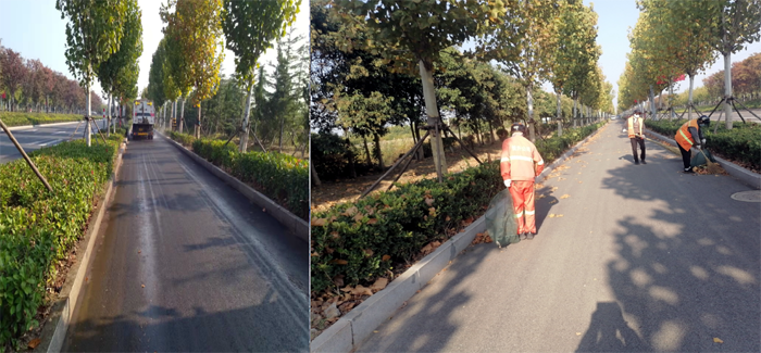 持续加大环卫巡查力度。该分公司制定详细预案,成立落叶期专项工作小组。采取人机结合方式,最大化保证清扫效果。加大机械化清扫力度,按照板桥工业园区道路环境,对落叶集中路段进行重点清扫,巡回收集,确保随落随清。合理调整环卫保洁人员,重点清扫机械清扫后的停车等障碍死角,适时延长人工保洁作业时间,加大落地枯死枝捡拾力度,为清扫车作业清除障碍。