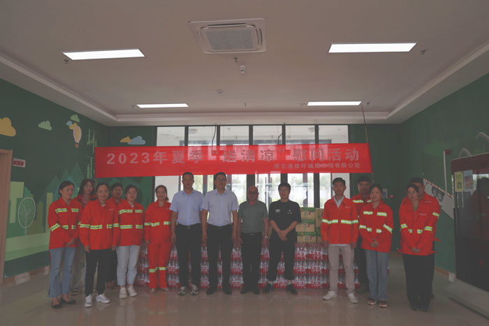 7月31日,方洋云开平台总裁助理、徐圩城建董事长刘明光,徐圩新区建设局徐冲,徐圩城建副总经理肖坚一行人踏着滚滚热浪来到徐圩新区环卫运营管理中心给悦升公司广大一线职工“送清凉”。