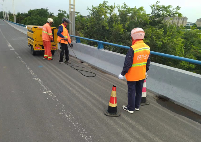该公司针对桥面泄水孔、泄水管、排水道等地方安排专人检查,养护清理的垃圾及时处理到位,不得堆放在泄水孔周边。汛期视情况加大清理频次。桥下卫生死角杂物集中捡拾、打包、装袋 、回场。桥面护栏乱悬乱挂广告、标语彻底清除及时冲洗,恢复原貌、露出底色。桥梁伸缩缝采取人工与机械结合重点冲洗清扫,保障伸缩缝干净整洁。目前,所管辖区大小桥梁已经水洗清扫整治到位。有效降低桥面扬尘现象的发生,增强行车安全系数,全面提升园区道路环境质量。